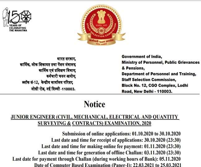 एसएससी जेई 2020 के लिए जारी महत्वपूर्ण नोटिस यहां देखें